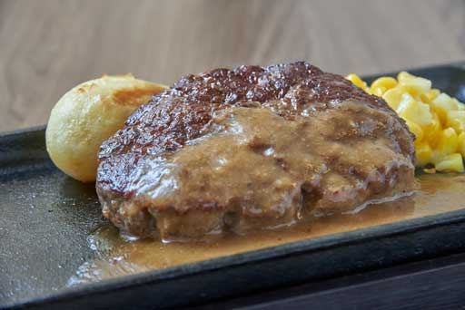 当店のハンバーグステーキはすべてビーフ100%のつなぎを極力減らした肉感豊かなハンバーグステーキです。